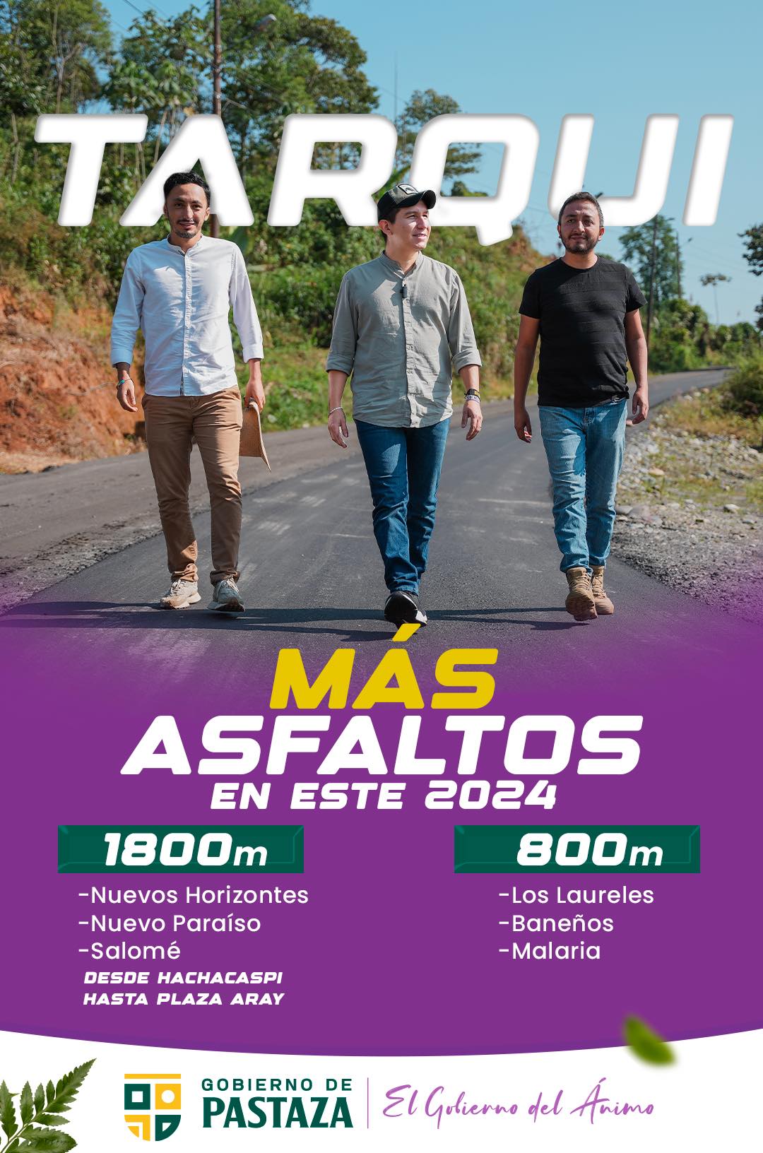 Hechos, no palabras!, en las próximas semanas iniciarán los trabajos de mantenimiento con asfalto caliente en dos importantes sectores en Tarqui, así lo anunció el prefecto André Granda en su visita.