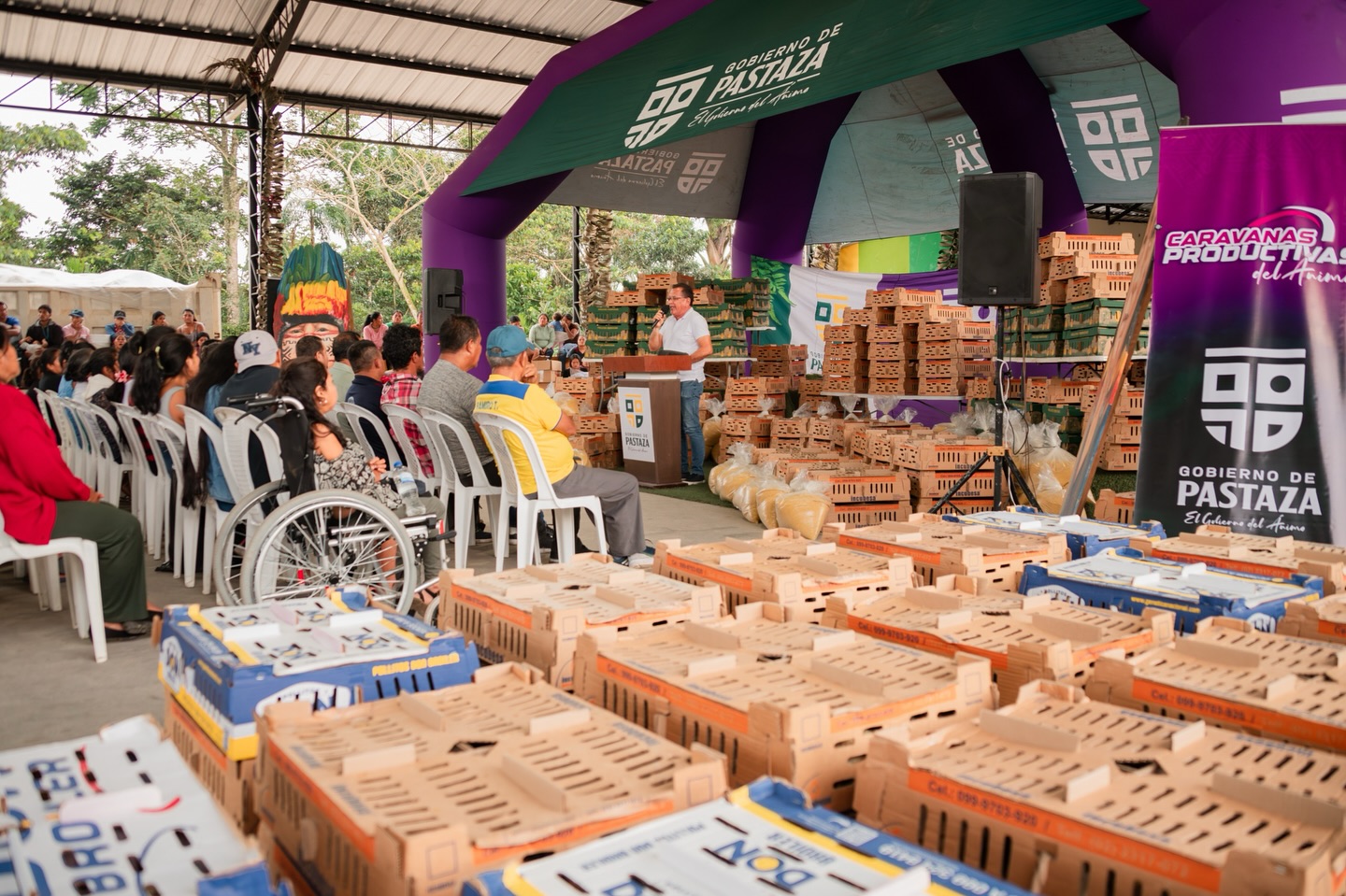 Las Caravanas Productivas del Ánimo, iniciativa del prefecto André Granda, continúan llegando al territorio. La cuarta entrega del 2026 se realizó en el sector Amazonas, parroquia Madre Tierra, cantón Mera, beneficiando a varias comunidades rurales.