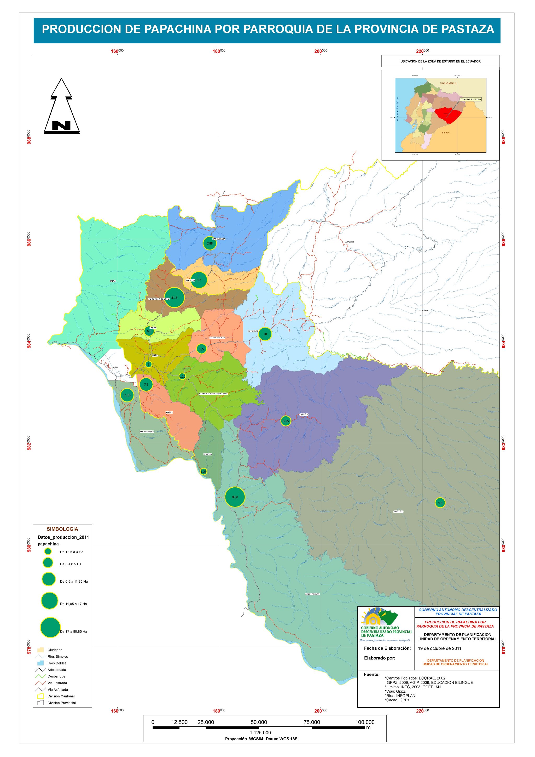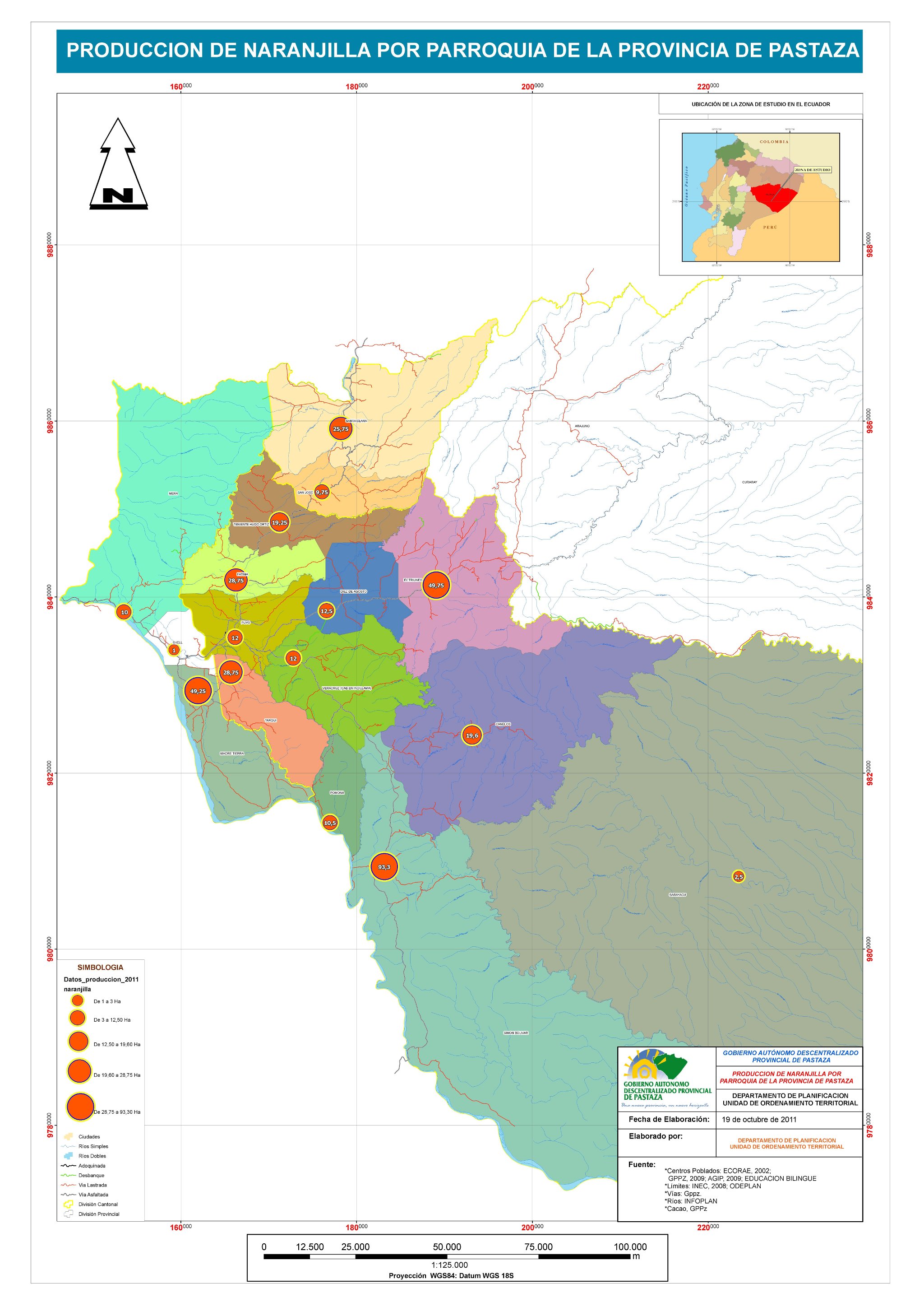 Mapa de Producción de la Provincia de Pastaza