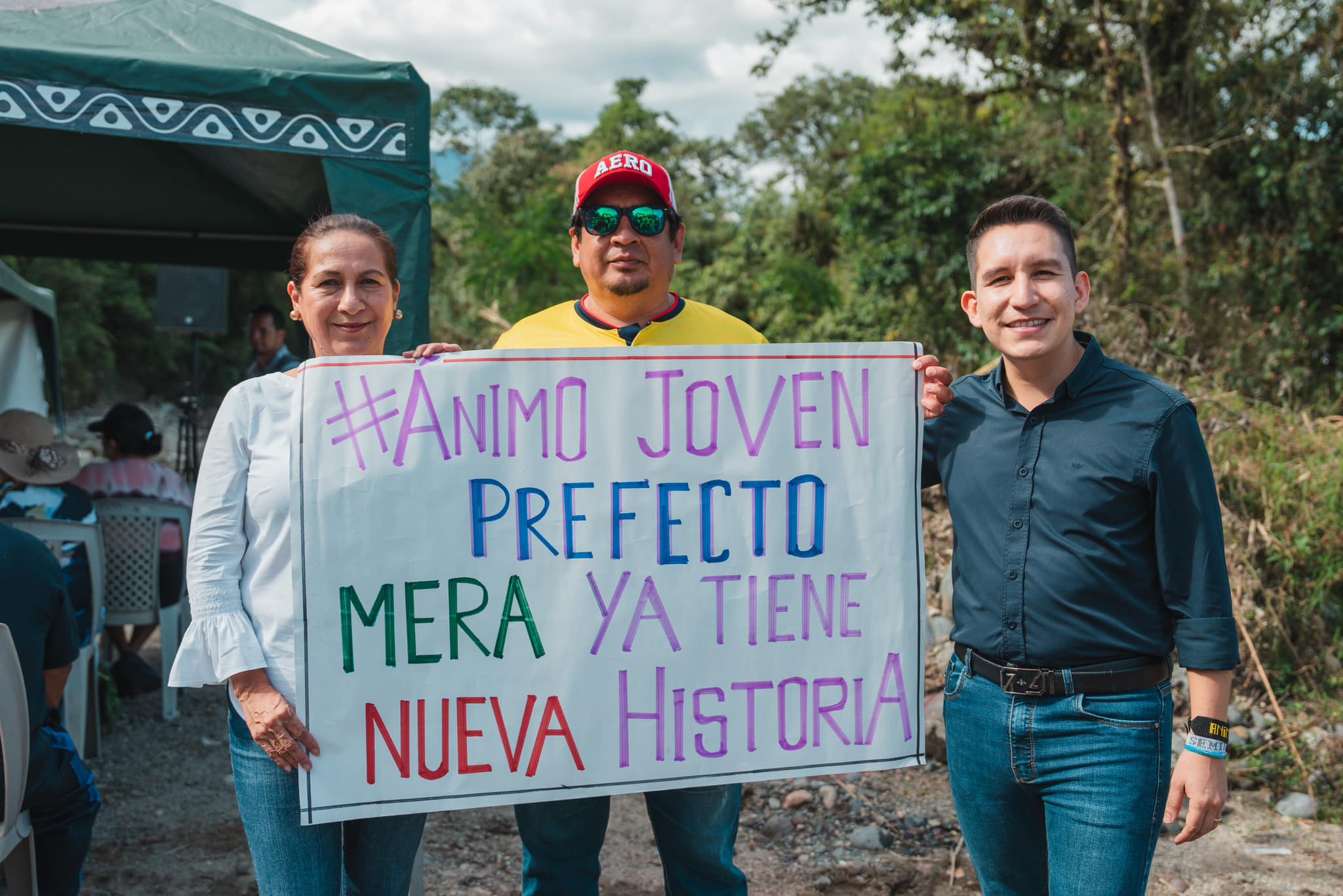 Hoy se realizó el corte de cinta para la primera piedra del puente sobre el río Tigre en Mera. La estructura será de hormigón de dos carriles y beneficiará a varias colonias como: Nuevo Mera, Isidro Ayora, 24 de Mayo, 09 de Octubre, dentro del cantón Mera. Se termina así con 40 años de espera.