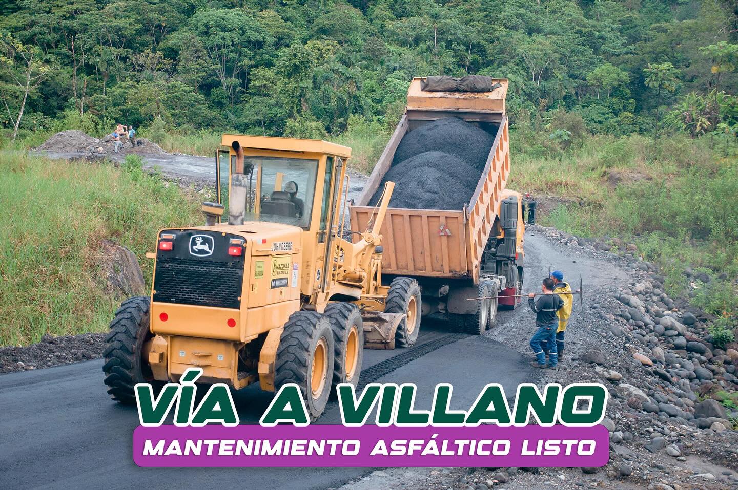 Este viernes, luego del mantenimiento y la reconformación de la vía, se ejecutaron trabajos finales de mantenimiento asfáltico en el kilómetro 3 de la vía a Villano, un sector afectado por falla geológica al cual la atención debe ser permanente.